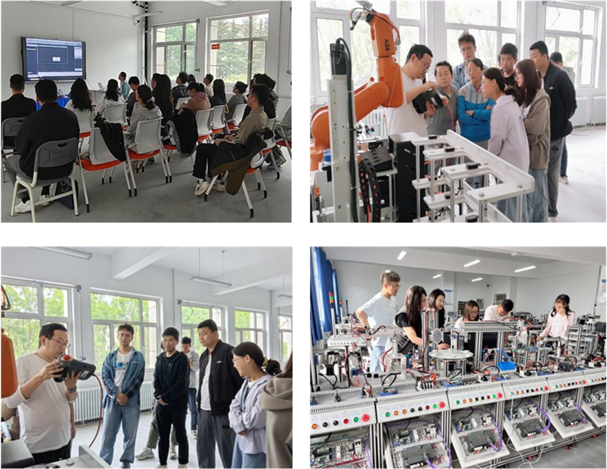 企业专家深入解析机电一体化系统原理、传感器技术及PLC编程等核心知识,并结合实际案例,演示机电设备的安装、调试与故障诊断流程。青年教师分组实操,在自动化生产线模拟项目中,完成机械结构搭建、电气线路连接及系统联调,有效提升了机电一体化综合应用能力。