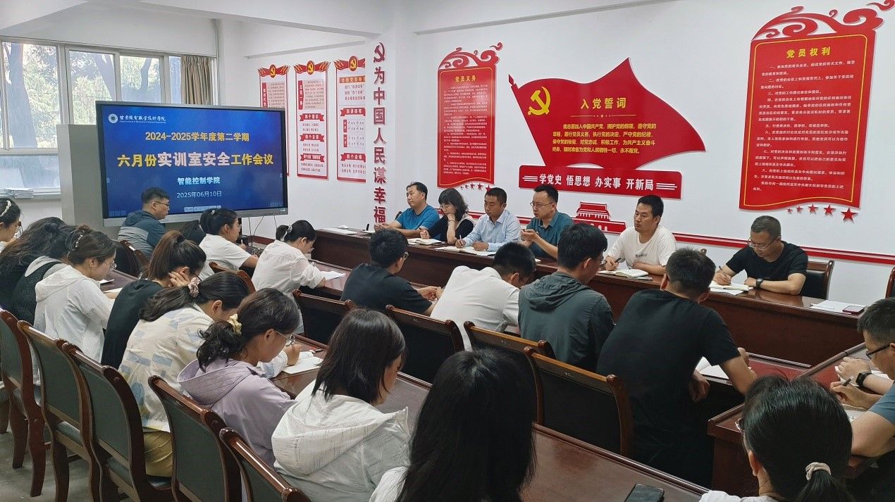 6月10日下午,智能控制学院召开六月份教学暨实训室安全工作会议。会议由智能控制学院院长张宏乐主持,党总支书记徐国锋、副书记刘晓花,副院长李小军及学院全体专兼职教师参会。