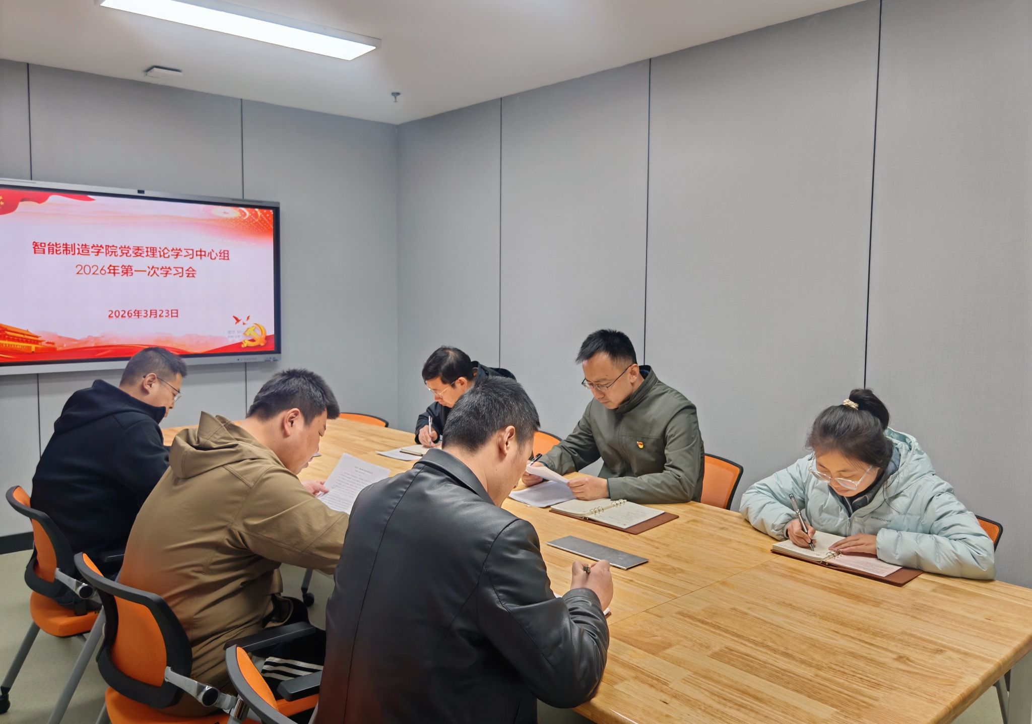 3月23日下午,智能制造学院党委书记杨龙主持召开党委理论学习中心组2026年第一次学习会,党委理论学习中心组成员参加学习。