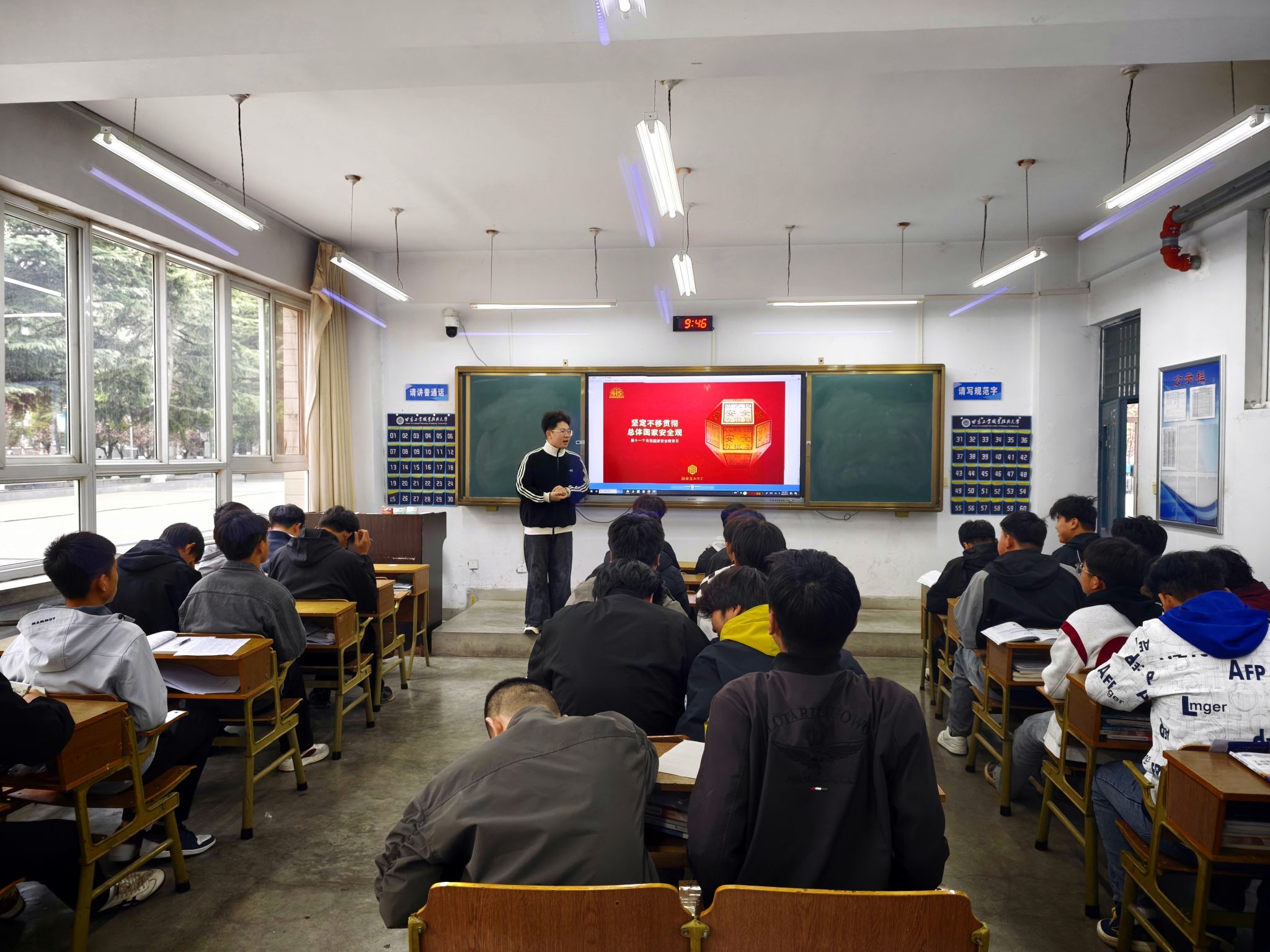 全体在校班级依托主题班会,由班主任、辅导员带领学生集中学习,通过案例剖析、知识讲解、互动讨论等形式,深入解读政治安全、经济安全、科技安全、网络安全等16个领域的安全知识,引导学生深刻认识国家安全与自身专业学习、未来职业发展的密切联系。同时,组织全院师生按时观看“千万师生同上一堂国家安全教育课”线上公开课,自主参与“全国大学生国家安全知识答题”活动,依托线上学习平台开展安全微课学习和知识测评,实现理论学习全覆盖、无死角,切实夯实师生国家安全理论基础。