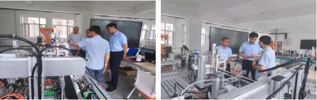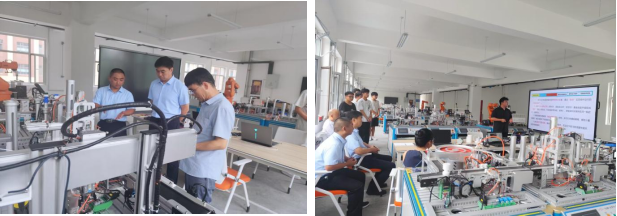 交流中,企业顾问聚焦智能控制设备程序优化、机械结构调试及系统协同运行等核心技术环节,结合行业实际案例与一线经验,剖析设备运行逻辑与技术难点。双方就自动化系统效率提升、故障预判等关键问题展开热烈研讨,教师们积极借鉴企业实践经验,将产业前沿技术要点融入教学思路,推动教学内容与产业需求同频共振。